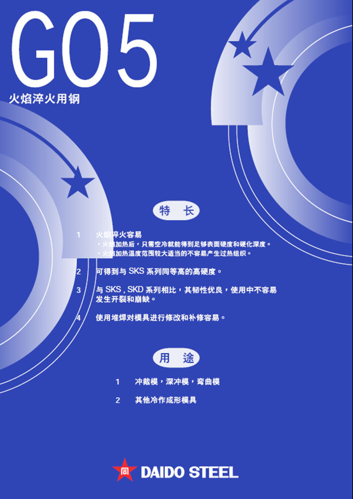簡(jiǎn)要描述:日本大同G05冷作模具鋼:火焰淬火模具鋼...