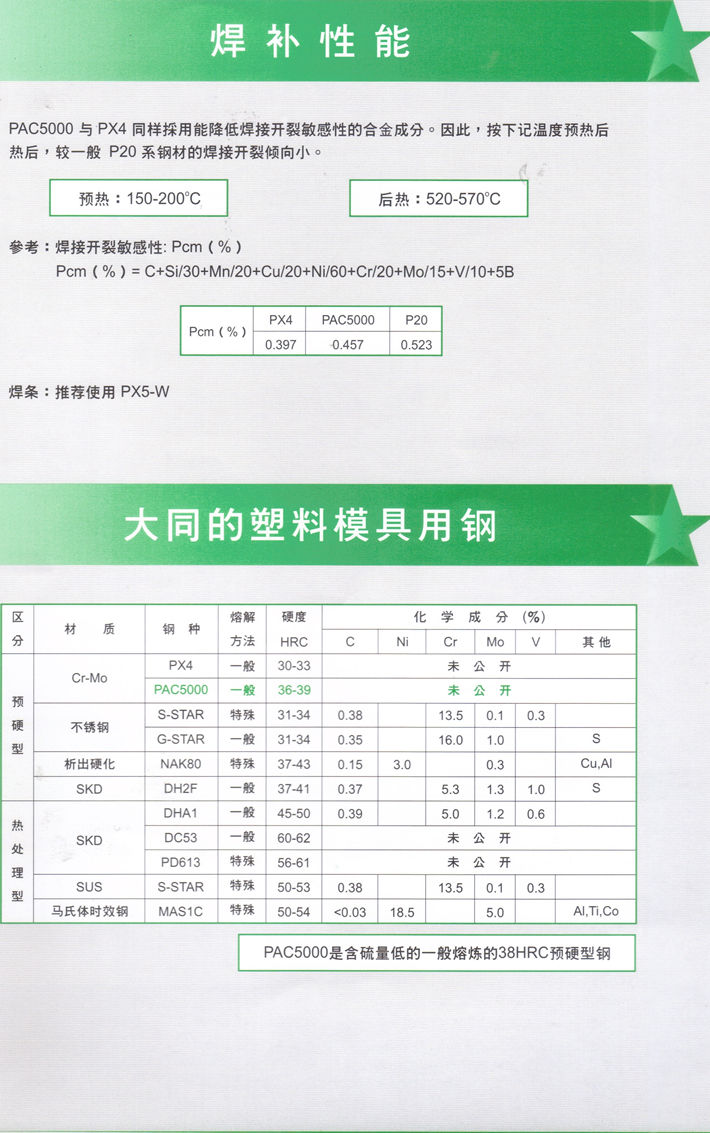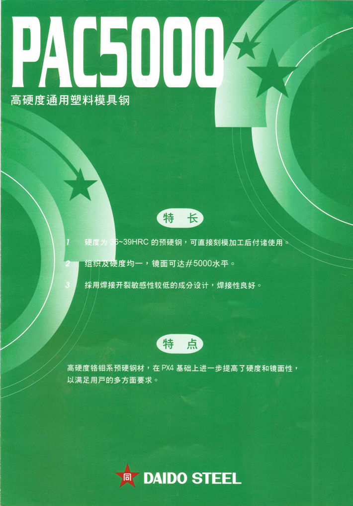 簡要描述:日本大同PAC5000塑料模具鋼:高硬度通用塑料模具鋼...